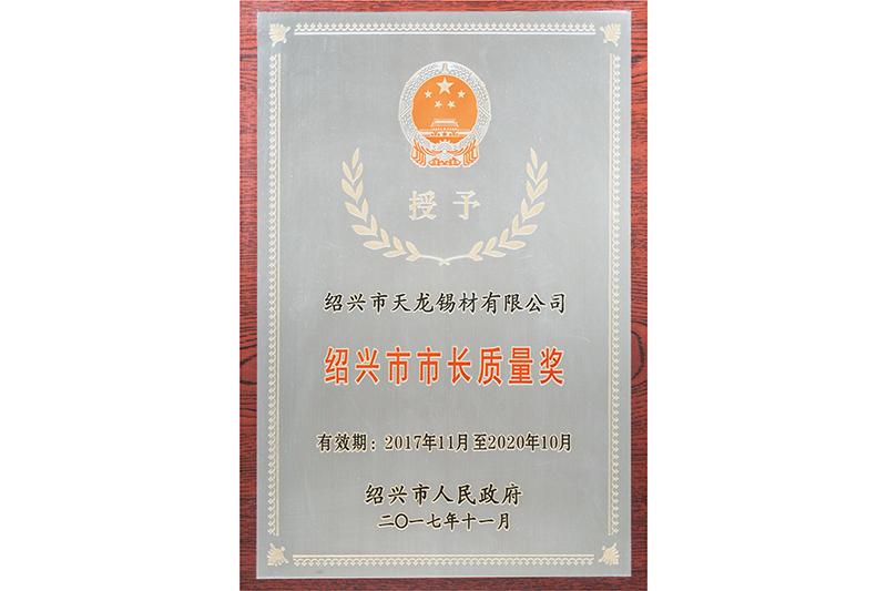 紹興市市長(zhǎng)質(zhì)量獎(jiǎng)